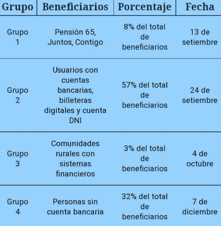 - Por su parte, las personas que son del Grupo 4 recibirán el subsidio a través de la atención por ventanilla del Banco de la Nación.