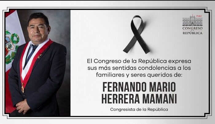 María del Carmen Alva, presidente del Congreso de la república, anuncio que el congresista de Perú Libre Fernando Mario Herrera Mamani falleció este lunes 25.…